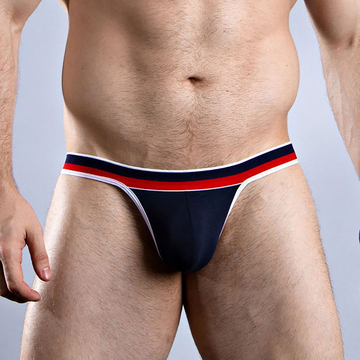 Мужские стринги от Dorense с упругой резинкой. Выполнены из тонкого, легкого материала, который почти не ощущается на теле. Широкая контрастная резинка украшает белье. Передняя часть однослойная, без подкладки.