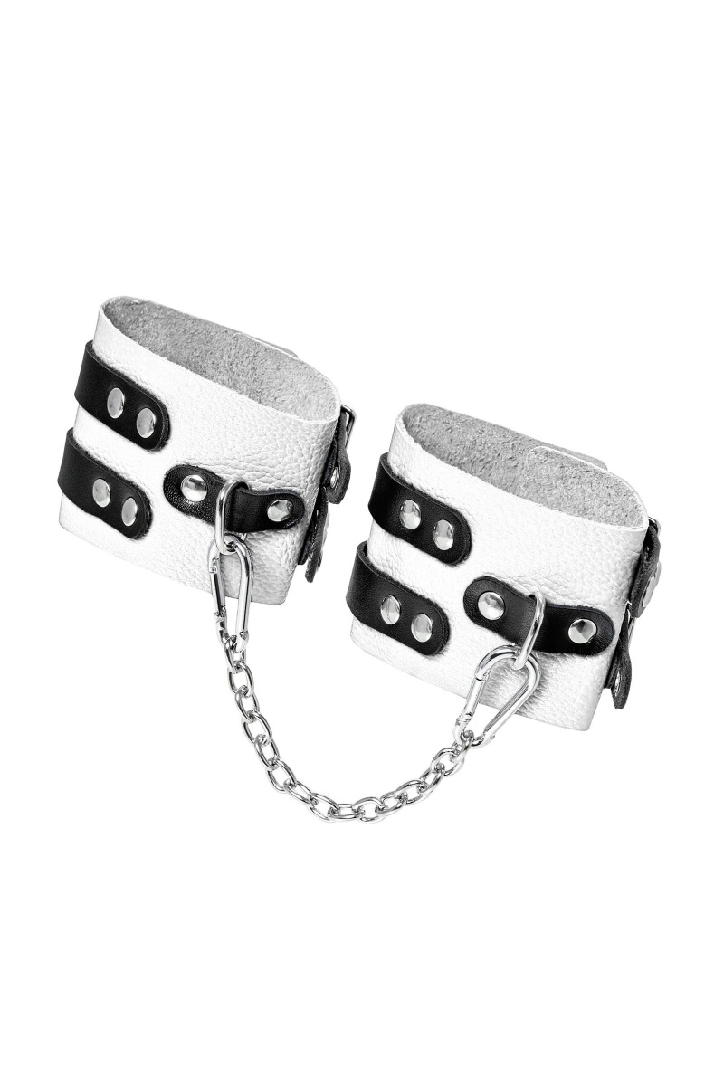 Мягкие оковы с двумя жёсткими ремешками от Pecado помогут обездвижить партнера во время сексуальных прелюдий или жестких БДСМ-играх. Оковы изготовлены полностью из белой, натуральной кожи. Ремешки выполнены из чёрной жёсткой кожи, украшены люверсами. Выделка материала произведена вручную. Ремешки и широкая манжета хорошо держат форму: не тянутся и не мнутся. Качественная металлическая фурнитура добавляет лоска изделию, а аромат натуральной кожи повышает градус возбуждения. Благодаря широкому запасу регулировок, можно подобрать необходимый обхват. Аксессуар удобно застегивать и легко расстегивать. При правильном использовании не оставляет следов на теле и не доставляет дискомфорта. Манжеты оков соединяются между собой помощью двух карабинов и съемной стальной цепочки. Подходит и для женских, и для мужских ног. Длина манжет - 25 см, ширина - 7 см. Длина сцепки - 20 см.