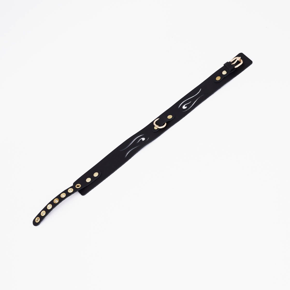 Представляем вам чокер с роскошным дизайном , который станет идеальным дополнением как для особых моментов, так и для создания запоминающегося образа. Этот ошейник — это гармоничное сочетание нежности, женственности и надежности, созданное для тех, кто ценит стиль и комфорт. Изделие выполнено из однослойной натуральной кожи с изящными декоративными резными узорами , которые придают ему уникальный шарм и элегантность. Надежная стальная фурнитура с золотистым покрытием добавляет изделию прочности и благородного блеска, делая его универсальным аксессуаром для любых ситуаций. Дизайн чокера подчеркивает нежность и женственность, что позволяет использовать его не только во время любовных игр, но и как стильный элемент гардероба, дополняющий ваш образ на вечеринке, фотосессии или в повседневной жизни. Общая длина изделия составляет 440 мм , а ширина основы — 50 мм , что делает его удобным и подходящим для любого обхвата шеи (от 32 до 40 см). Упаковка? Она тоже часть удовольствия! Чокер доставляется в фирменной упаковке с брендированной деревянной подложкой, которая не только защищает изделие, но и делает его идеальным подарком для особого человека… или для себя любимой(-ого).