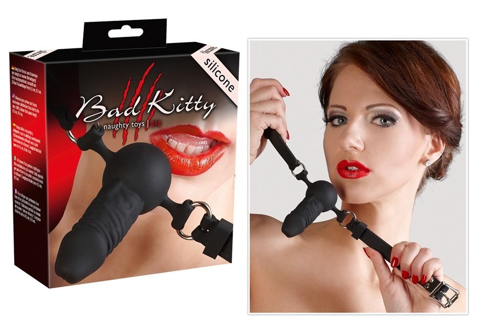 Два удовольствия сразу! Максимально комфортный и функциональный - кляп Bad Kitty предотвратит нежелательные разговоры, а также позволит доставить дополнительное удовольствие партнеру вагинальной или анальной стимуляцией. Регулируемый ремешок застегивается на пряжку.