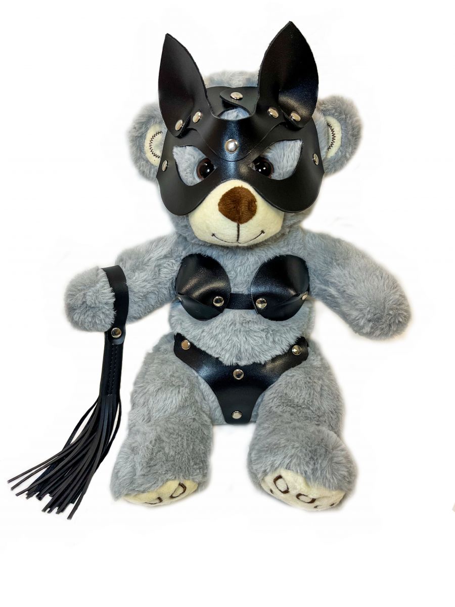 Необычный БДСМ Мишка в образе домины - в маске, белье и с плетью - идеальный вариант, чтобы порадовать ценителей оригинальных подарков. Костюмчик выполнен из искусственной кожи.