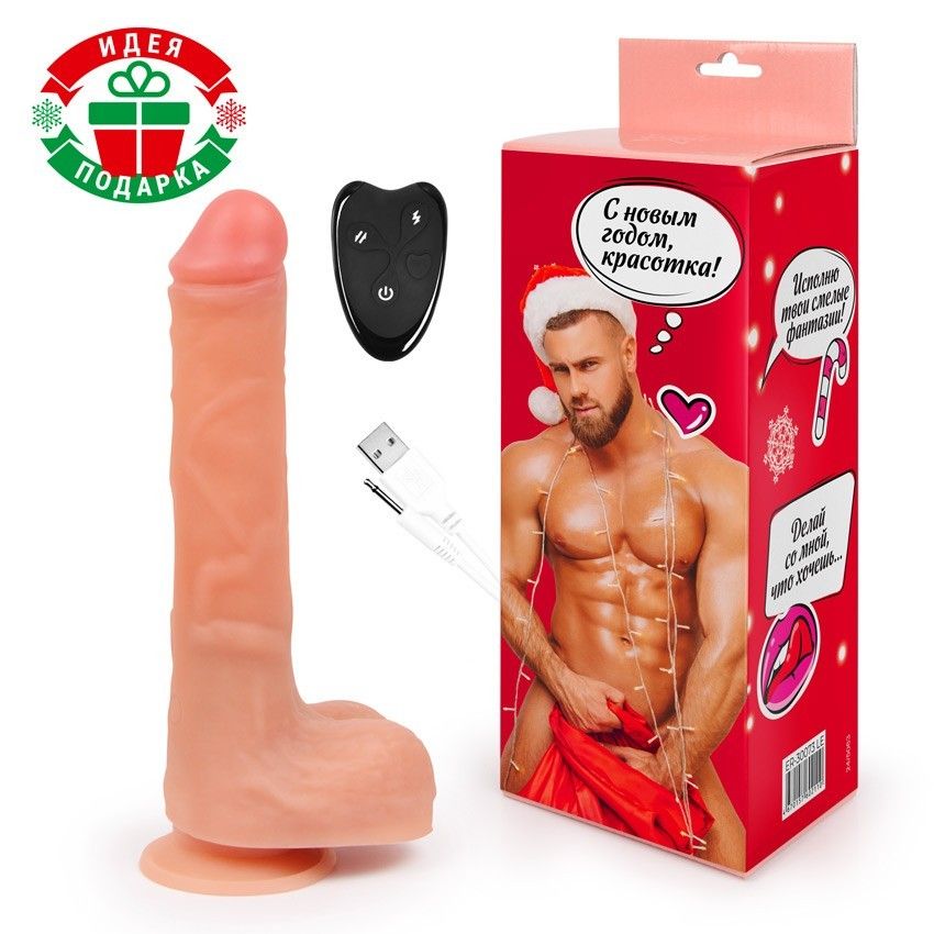 Реалистичный вибромассажёр в тематической упаковке - роскошный подарок на Новый год! Вибрация и разнообразные режимы возвратно-поступательных движений усилят удовольствие, вознесут на вершину блаженства. Присоска позволит прочно закреплять изделие на ровной поверхности в горизонтальном или вертикальном положении. В комплект входит USB провод для зарядки секс-игрушки, дистанционный пульт, батарейка для пульта. Рабочая длина - 16 см.